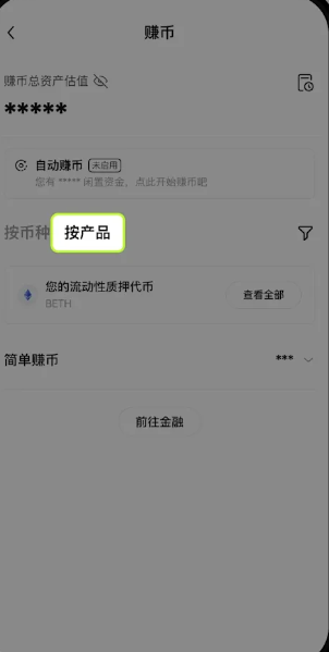 【按币种】 或【按产品 】 区选择活期简单赚币